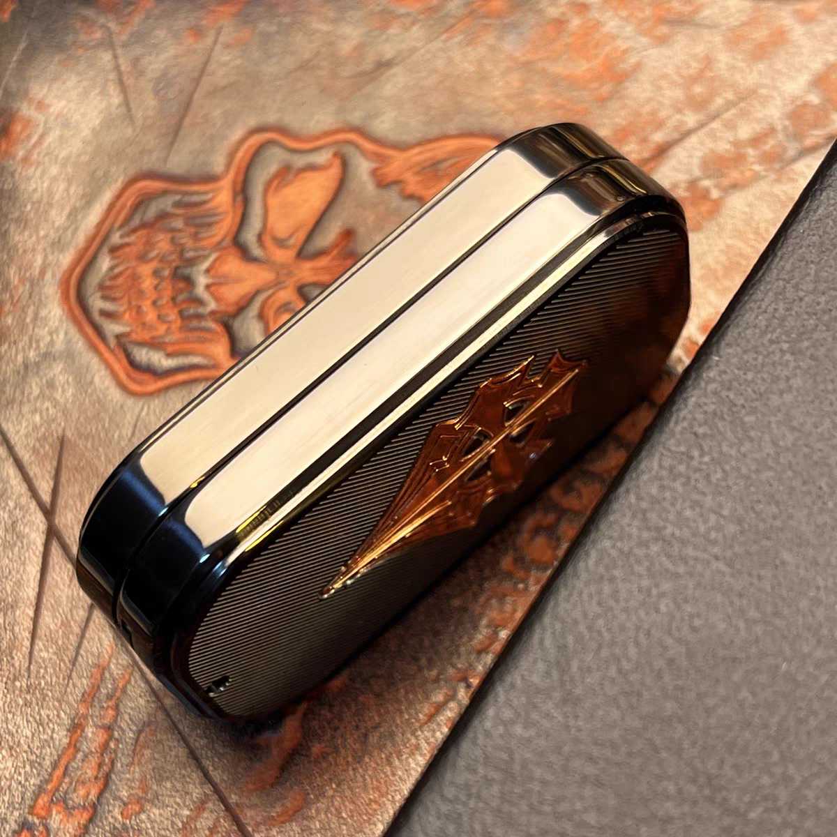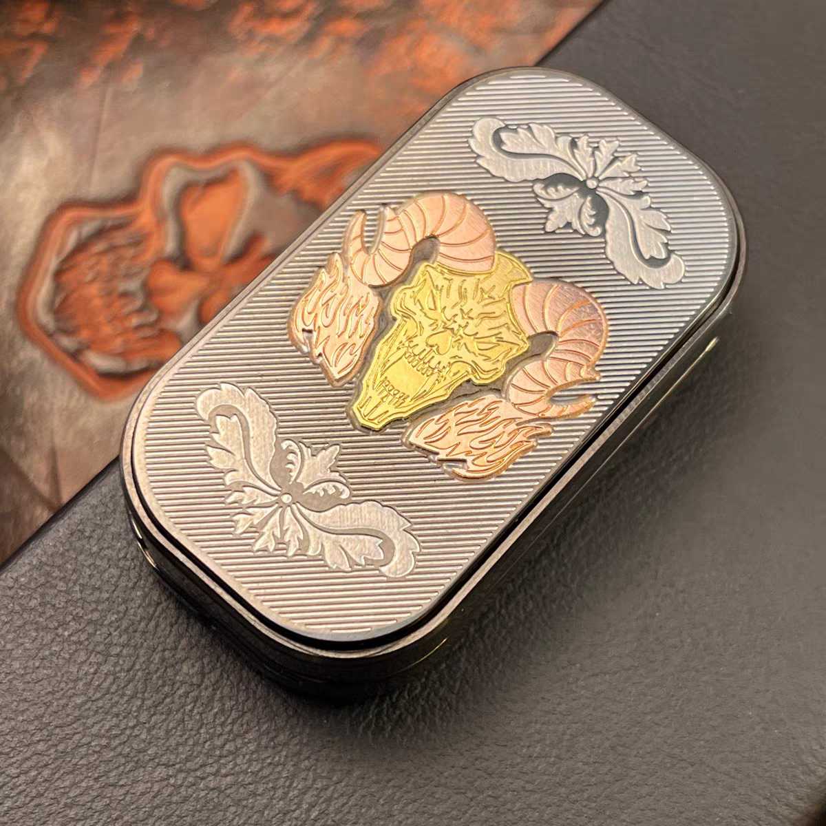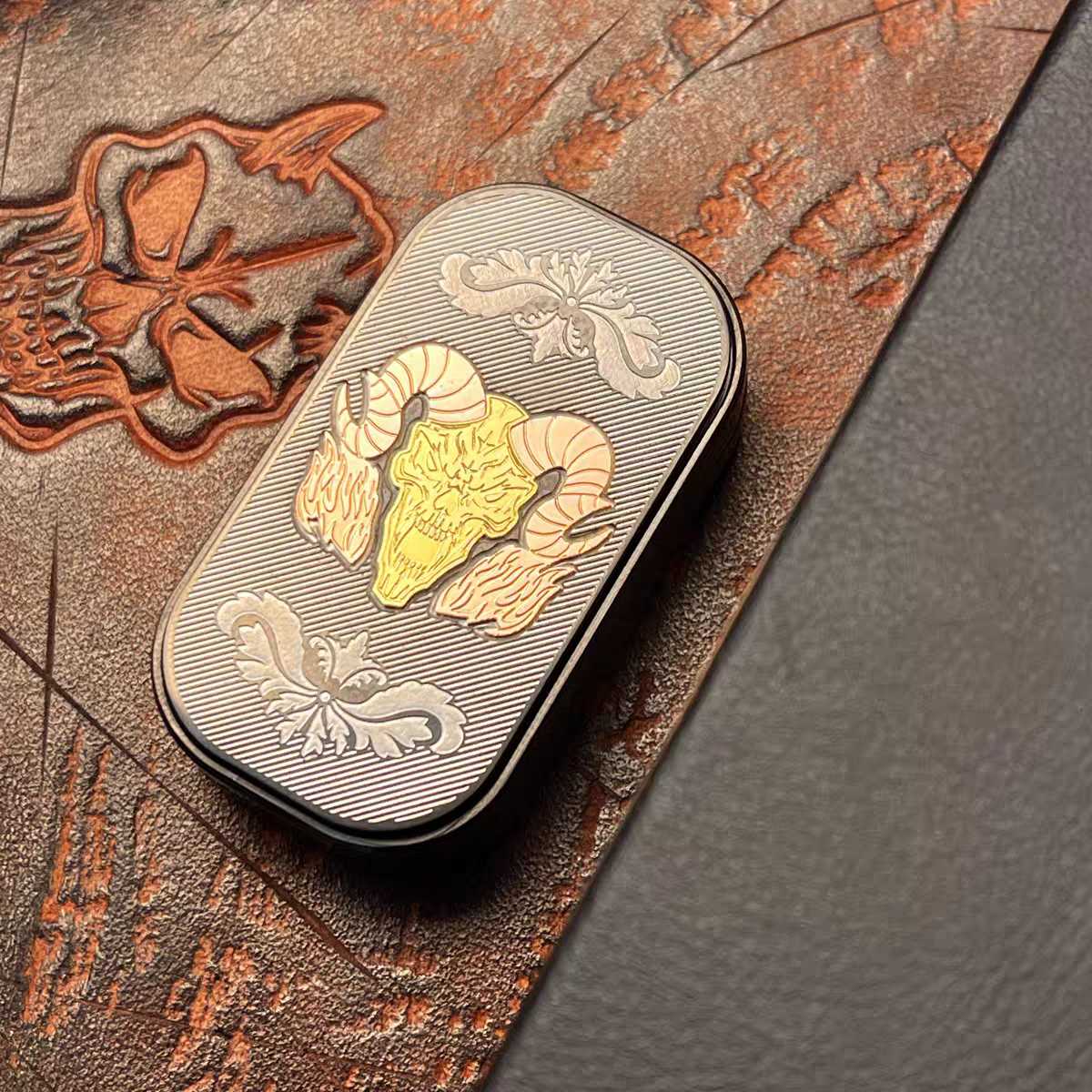 Striking Design: The brass skull and flame motif paired with engraved patterns creates a rebellious and artistic statement piece