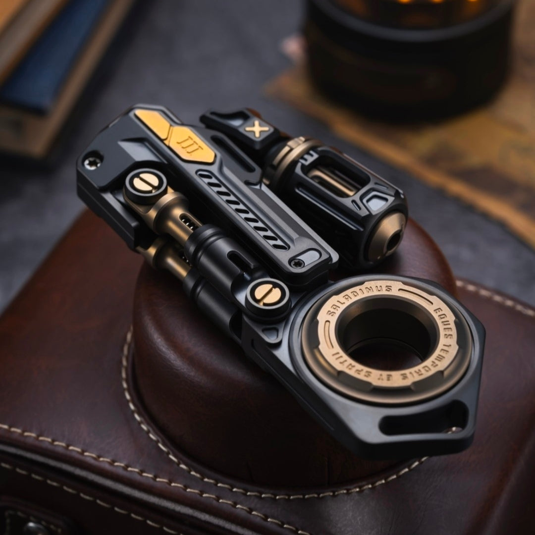 Integrating sliding, spinning, tapping, and more, this device offers a wide range of stress-relief play styles to suit various preferences. The modular structure is packed with mechanical aesthetics from every angle.